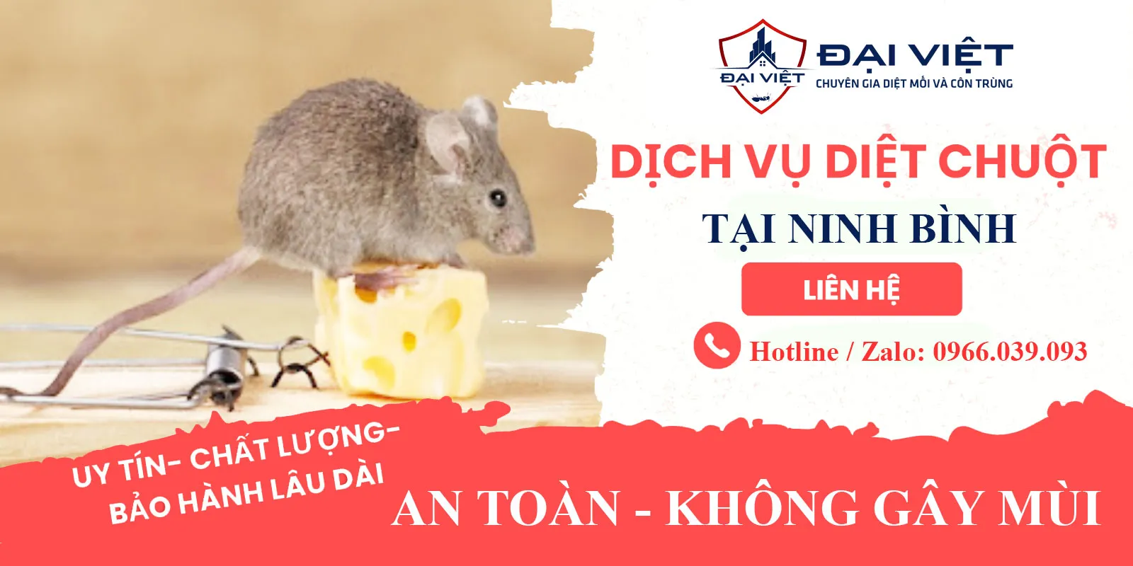 Bạn đang cần dịch vụ diệt chuột tại Ninh Bình nhanh chóng, uy tín, an toàn? Gọi ngay Đại Việt – chuyên diệt chuột tận gốc cho nhà dân, kho xưởng, nhà hàng, công ty. Khảo sát miễn phí – bảo hành đến 6 tháng!