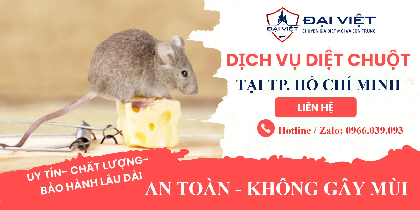 Bạn cần dịch vụ diệt chuột tại TP.HCM nhanh, hiệu quả, giá hợp lý? Liên hệ ngay Đại Việt - xử lý chuột tận gốc cho nhà ở, kho xưởng, nhà hàng, văn phòng. Khảo sát miễn phí - bảo hành từ 1 đến 6 tháng.