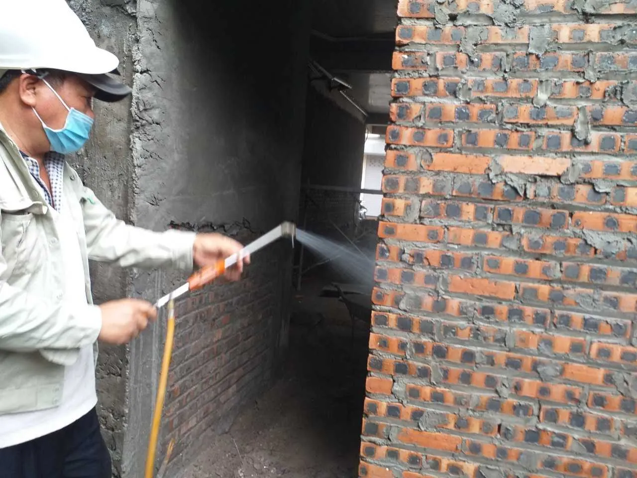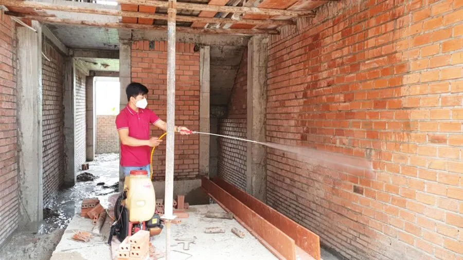 3. Hàng rào chống mối mặt tường ngoài và trong: Dùng dung dịch thuốc phòng chống mối phun lên mặt tường trong, tường ngoài, vách ngăn, tường tiếp giáp với các khuôn cửa. (nhằm tạo màng kín ngăn ngừa mối đi giữa lớp vữa và gạch lên công trình).