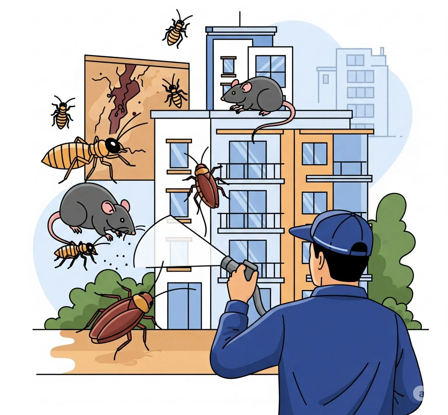 - Chung cư: Xử lý côn trùng tại các khu chung cư cao cấp, đảm bảo môi trường sống sạch sẽ, an toàn.